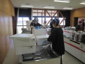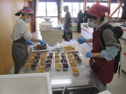 家庭科室では、つきあがったおもちを教室に運ぶための箱やきなこ、あんこの準備が進められていました。