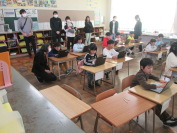 | 11月15日は、授業参観ともちつき交流会を行いました。お楽しみのもちつき交流会は、のちほど…まずは、しっかりお勉強をします。2時間目はお家の方から授業を参観していただきました。1年生はタブレットをじょうずに使っていました。6年生は、これまで総合的な学習の時間でお世話になった方をお招きして、福祉について学んだことを発表していました。たくさんの学びがあったことが分かる発表でした。 |