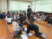放課後は、見せていただいた授業から職員みんなで学ぶ研修を行いました。先生もがんばっています。 |