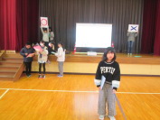11/26(水)の児童朝会で、図書委員会が読書旬間に合わせて発表してくれました。図書室や本にまつわる「図書クイズ」を出題してくれました。杉の子班のペアで考えて、〇と×のエリアまで走りました。笑顔で話し合う姿にほっこりしました。