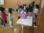 1月23 日(金)に石上どれみ子ども園の年長さんが、雪の降る中、バスに乗って上林小学校に来てくれました。小学校の紹介したり遊びのおみせ屋さんがたくさん用意された「カラフルまつり」などで年長さんと遊んだりして、関わることができました。楽しんでいる年長さんの姿を見た1 年生は、とっても嬉しそうでした。これまで一生懸命に準備してきた成果です。年長さんから、お礼の演奏を受け取り1 年生の子どもたちは大満足の様子でした。最後に、玄関で年長さんが乗ったバスに手を振って見送りました。