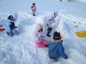 あっという間に時間が過ぎ、終わりのブザーが!「もっと遊びたいよぅ!」との声が聞こえてきました。楽しかったね。今日は、絶好の雪遊び日和でした。