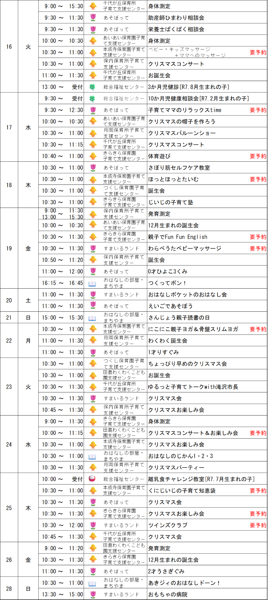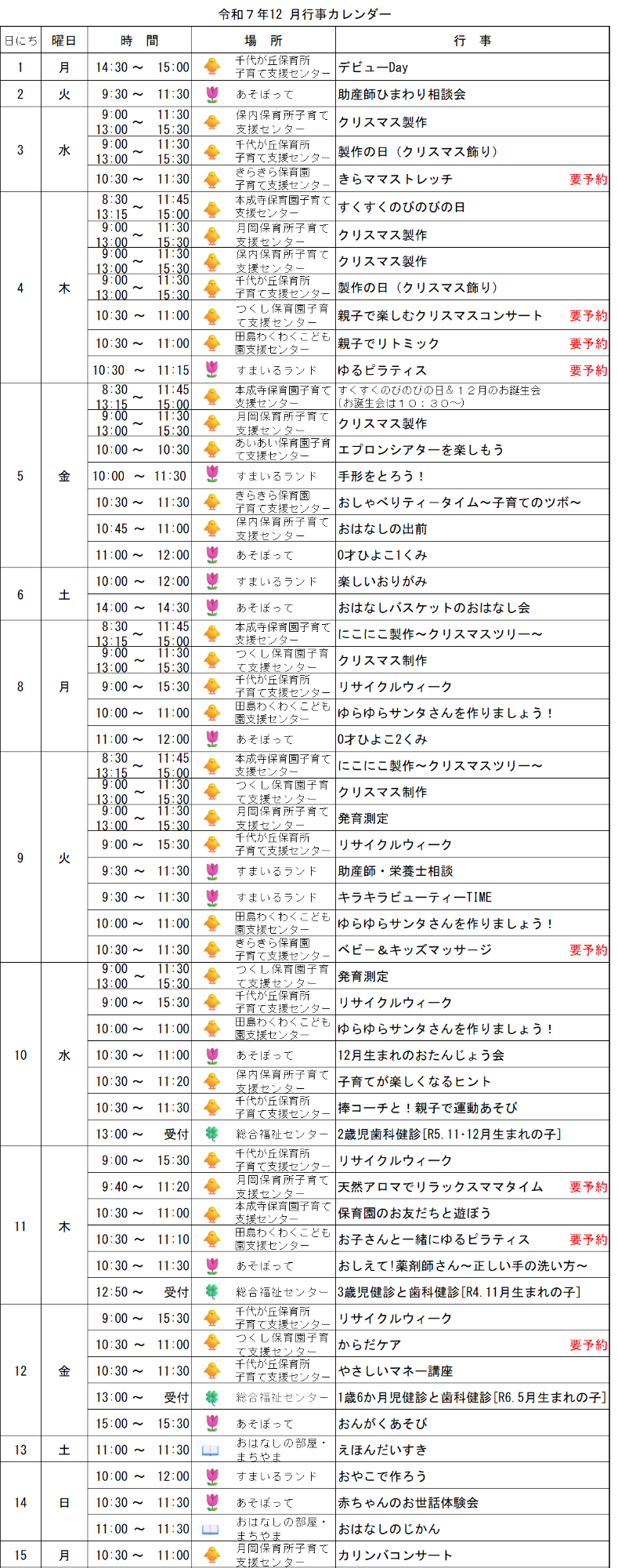 令和7年12月の子育てイベントカレンダー