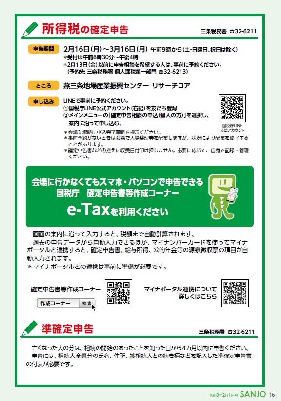 問合せ・・・三条税務署 電話 0256-32-6211 (自動音声案内)