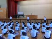 校長先生から、千葉で起きた痛ましい交通事故や校長先生自身の経験を交えてお話をいただきました。「事故で命を落とすようなことがあってはなりません。そのために、交通ルールやマナーをしっかりと守りましょう。」