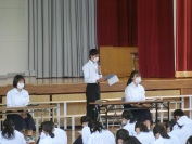 全校生徒は、代表の発表を聴きながら、自分はどうだろうかと思いを巡らせたことと思います。それぞれの目標に向かって、生活していきましょう。