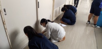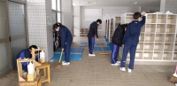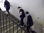 卒業を間近に控え、3年生が3年間お世話になった校舎に感謝を込めて清掃活動に取り組みました。四中伝統の立つ鳥活動です。「立つ鳥跡を濁さず」のことわざのとおり、一生懸命に校舎をきれいにしました。