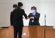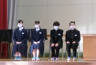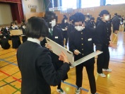 続けて、生徒会役員の認証式を行いました。校長先生から認証状を手渡された新会長・新副会長・新応援団長は、決意を新たにしていました。