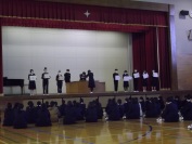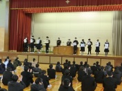 まず、各学年と生徒会代表の4名が「2学期の反省と冬休みの抱負」を発表しました。