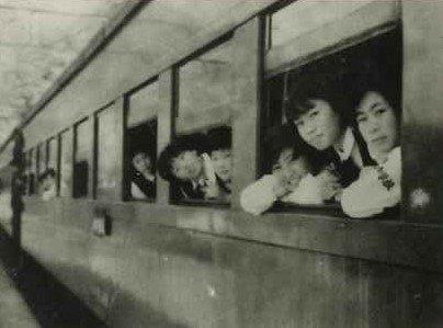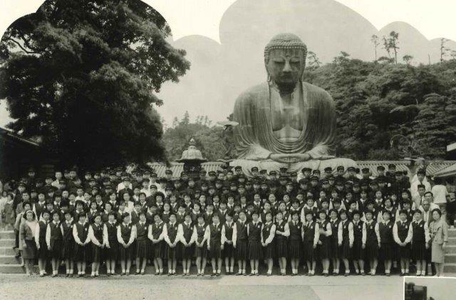 昭和41年 修学旅行 鎌倉の大仏前で 上野駅にて「さようなら東京!」 |