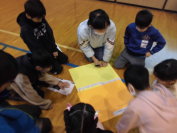 「長縄(8の字跳び)」は、各グループが設定した目標に挑戦しました。どのグループも練習を重ね、目標回数を大幅に超えることができました。終わった後の振り返りでは、「最初は40回跳ぶのがやっとだったけど、今日は88回も跳べてすごいと思った」と感想を述べている子がいました。今回のように目標に向かって力を合わせる経験を、様々な場面で生かしてほしいと思います。