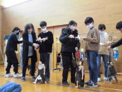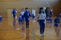 1月31日、校内なわとび大会が行われました。今年度は、「前回しマラソン」となかよし班による「長縄(8の字跳び)」が行われました。「前回しマラソン」は、低学年で2分以上、中学年で2分30秒以上、高学年で3分以上続けて跳ぶと金賞がもらえます。今年は、温かい日が多かったため、体育館や各階のホールで十分な練習を積むことができました。金賞をとることが大勢いて、例年以上の成長を感じることができました。