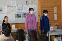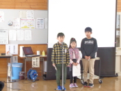 今日の終業式では、3人の代表が2学期の振り返りと冬休みや3学期のめあてを発表しました。「冬休みは、お母さんを助けたい」「頭がよくなるように勉強をがんばりたい」等、今後のめあてを堂々と発表してくれました。