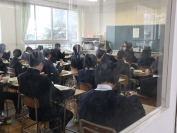 テスト前の質問教室に、新潟県立三条東高等学校の2年生3名が応援に来てくれました。教科によって教室を分けていますが、左写真は数学の教室、右写真は理科室の様子です。高校生たちは生徒を励ましながら、熱心に質問に答えてくれました。活動の様子については三条東高校ホームページにも紹介されています。ホーム画面の左側のバナーにある「三条東高校のnoteへ」をクリックし、ご覧ください。