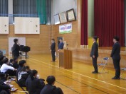 また、終業式の後、新秀峰会三役の認証式と表彰が行われました。2学期に表彰を受けた生徒がその成果を自ら発表し、報告しました。多くの生徒の活躍が見られた2学期でした。