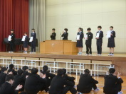 各部、団体の代表が、全校に向けて結果報告をしました。(左写真)結果だけでなく、大会を通して多くの気づきを得て、これからの目標が明確になったようです。その後、入賞者を表彰し、全校生徒で讃えました。(右写真)