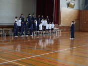 全校朝会の際に、生徒指導担当から連休中の生活の留意点について話をしました。(左写真)自転車事故だけでなく、例年、水難事故も全国で発生しています。そして、不審者に遭遇した際は迷わず警察に連絡してください。その後、学校にも教えていただければと思います。学校では、不審者に会ったら関わらずに逃げるようにと教えています。朝会では、休み中に行われた大会の賞状伝達も行いました。(右写真)連休となりますが、部活動などでけがをしないよう気を付け、いろいろ楽しみつつ、体も休め、また元気に登校してもらいたいです。
