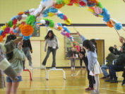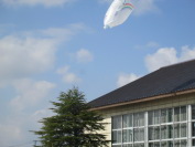 3月17日(火)に4年生が体育館の脇に集まっていました。何だろう?と見ているとジェックヒーターの熱で温められた空気を大きなビニール袋で集めていました。あっという間に大きくふくらみ、青空へ!子どもたちの思いを乗せて結構高くまで舞い上がりました。