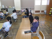 杉の子班の高学年の5、6年生が、同じ班の1、2年生の体力テストの計測の補助をしました。お手本を見せたり、「がんばれー!」と応援したり、「もっとしゃがんで力を入れるといいよ」などのアドバイスをしたりしていました。杉の子班で楽しく活動できました。