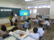 7月11日(金)にALTの先生が来てくださいました。1年生は、はじめてのえいごの授業です。さぁ、フルーツのすごろくで対決です。「いちごは、ストロベリーだね。」「くりってなんていうの?」いろんな会話が聞こえてきます。とても楽しそうでした。ぜひ、どんな果物があったのか聞いてみてください