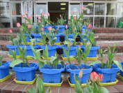 | 学校の周りがお花で華やかになりました |