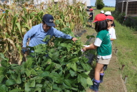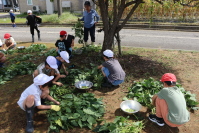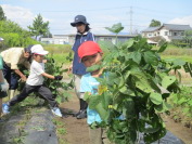 3年生に引き続き、今度は1、2年生が枝豆の収穫をしました。