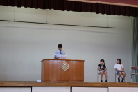 5名の委員長がステージに並び、8名の学級委員がフロアに並び、全校に紹介されました。