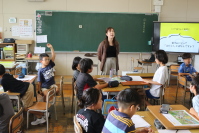 普段は担任が授業をしていますが、1週間に1回程度CIR(外国人講師)と中学校の英語の先生(小中一貫加配教員)が来校し、授業を行っています。