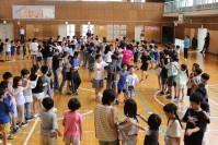 今日のますがた集会は、健康委員会が主催した「じゃんけん列車」ゲームをしました。