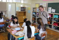 高学年は外国語の授業を週2時間、中学年は外国語活動の授業を週1時間しています。