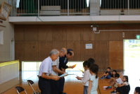 大面駐在所長様、三条警察署生活安全課スクールサポーター様からは、 「子どもたちは大変真剣に訓練に参加していました」と、子どもたちの様子を褒めていただきました。