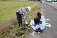 栄中央小学校に集合し、球根の植え方を確認して栄庁舎近くの現地に移動しました。