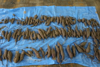 写真左は4年生の収穫したサツマイモです。夏の暑い日が続いたので出来栄えが心配されましたが、どの学年も豊作でした。