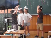 9月5日(金)5・6時間目に3・4年生の学年PTA行事がありました。最初のゲームは、目隠しチャンバラでした。互いに目隠しをして先に相手を叩いた方の勝ちです。相手が見えないので、いい加減にぼうを振っている姿を楽しませていただきました。5・6年生は、5時間目に適切な朝食を考えるという食育授業を行いました。講師の先生の話を聞いてバランスの良い献立ができました。
