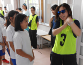 じゃんけんをしたり、ピンポン玉をコップにいれたり、