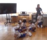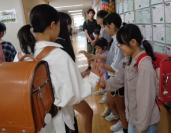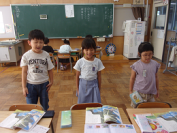 生活科で、1・2年生が先生方にあいさつをしていました。