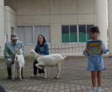 子ヤギを上手に優しく抱っこ!さすが笹岡っ子です。