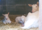 お母さんヤギ、双子のあかちゃん、三人とも元気です。