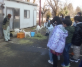 昨日生まれたヤギの赤ちゃんの体重測定を、お世話を2年生からバトンタッチした1年生のみんながしました。