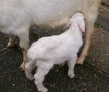 私たちが駆けつけた時にはすでに、赤ちゃんヤギも立ち歩き、お母さんのおっぱいを飲んでいました。