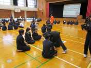 学園の6年生を迎えて下田中学校1年生と合同で絆スクール集会を行いました。前半は講演会、後半は小学生と中学生が一緒になってグループワークを行いました。中学生が話し合いをリードしながら「いじめ見逃しゼロ」にするための取り組みや自分にできることについて考えを深めました。