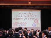 生徒会本部企画のR7絆レク・いじめ見逃しゼロ集会が行われました。前半は学年が混ざった縦割り班による話し合い活動でした。後半は生徒会が年間を通して取り組んできた「絆レク」でした。絆レクでは「じゃんけん列車」を行いましたが、今まで以上に学年を超えた交流ができたことに生徒本部も喜んでいました。先生方を積極的に巻き込むようにリードした進行も良かったと思います。寒い体育館でしたが、気持ちが温かくなる企画でした。生徒会本部の皆さん、ありがとう!そして、お疲れさまでした!