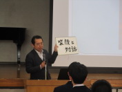 1年生の総合的な学習の時間に取り組んでいる「ふるさと学習」もいよいよ最終段階となりました。今回は道の駅「漢学の里」しただ駅長をお務めの渡辺様にお越しいただき、講演をしていただきました。下田中学校の大先輩である渡辺様から駅長になるまでの経緯や道の駅でのお仕事の様子、下田の特産品や魅力、今後の夢等を大変分かりやすく、また生徒が興味が湧くようにお話していただきました。下田をより良くしたい、活性化させたい、地域の担い手を育成したいという熱い思いが伝わってきました。1年生が考えたアイデアが実際に商品化されるかもしれないというビッグニュースもありました。生徒達からの質問にも丁寧に答えていただき、渡辺様の職業観に触れるとともに下田についてより理解を深めました。渡辺様ありがとうございました。