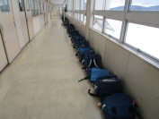 卒業した3年生の多くは本日の公立高校一般選抜学力検査に挑みました。1・2年生は5教科の確認テストでした。テストを受けて、日頃の積み重ねの大切さを痛感したのではないでしょうか。1年後もしくは2年後には入試が待っています。先を見据えた取組や日常生活を考えるきっかけになることを期待しています。画像は、2年生のテストの様子と1年生の廊下に整然と並べられたカバンです。