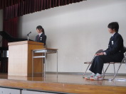 同窓会入会式が行われました。同窓会長の川沼様からは「どんな時にも笑顔と対話を忘れずに頑張ってほしい」という激励をいただきました。この40年の間に下田中学校同窓生が多方面で活躍されています。その仲間入りをしたという誇りと自覚をもって、今後もますます成長していってくれることを期待しています。