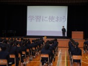 全校オリエンテーションが行われました。全校生徒が体育館に集まり、学校生活全般、学習や部活動等での心構えや変更点等を担当の先生方から説明を受けました。昨年度の反省を生かし、良くできたところを更に伸ばしていく大事な説明です。変更になったことも多くあります。冊子にもなっていますので、必要に応じて後でしっかり確認をしてほしいです。長い時間の説明でしたが、最後まで乱れることなく、聴く態度がとてもよかったです。2・3年生が良き手本となっていて素晴らしいです。ぜひ、これを継続してほしいです。説明で聴いたことも生かして、自分自身の成長に繋げてほしいです。いいぞ下中!!