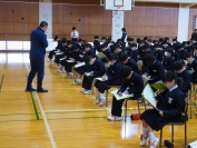 この引退コンサートは吹奏楽部3年生が生徒の前で演奏する最後の機会になります。昼休みにも関わらずとても多くの生徒と職員が聴きに来ました。3年生のソロパートがそれぞれにあってたいへん聴きごたえがありました。最後の演奏曲は、Jポップメドレー。拍手喝采で幕を閉じました。吹奏楽部3年生の皆さん、お疲れさまでした!