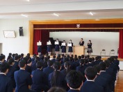 新生徒会本部が企画した「3年生を送る会」がありました。3年生に関係するクイズ大会や1・2年生からの激励応援等、みんなが笑顔になる心温まる会となりました。この企画以外でも校舎の中には3年生への感謝を示す素敵なものがたくさんあります。本当に素敵な生徒達です。