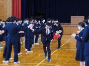 3名の職員が退職・転出となりました。下田中学校のためにご尽力いただいたことに感謝申し上げます。子どもたちに向けた心のこもったスピーチは感動的でした。最後はみんなで花道を作り、温かい雰囲気で送り出すことができました。新天地でのご活躍を祈念申し上げます。