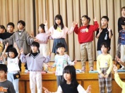 | ダンスや歌、合奏にクイズなど、各学年が様々な工夫を凝らした活動で1年生を迎えました。1年生は学年で校歌を歌いました。今後は、縦割り班の若草班活動が増えてきます。1年生も加わり、さらに仲の良い裏館小学校になってほしいと思います。 |  |  |